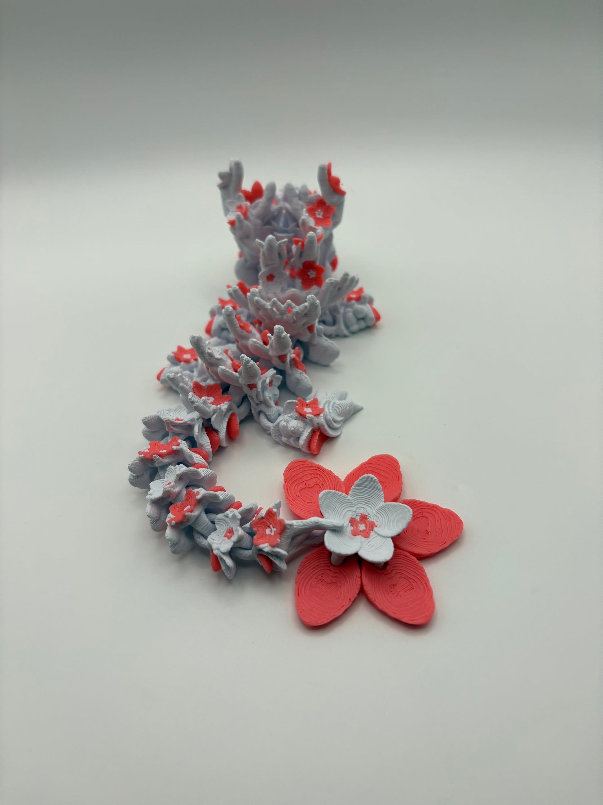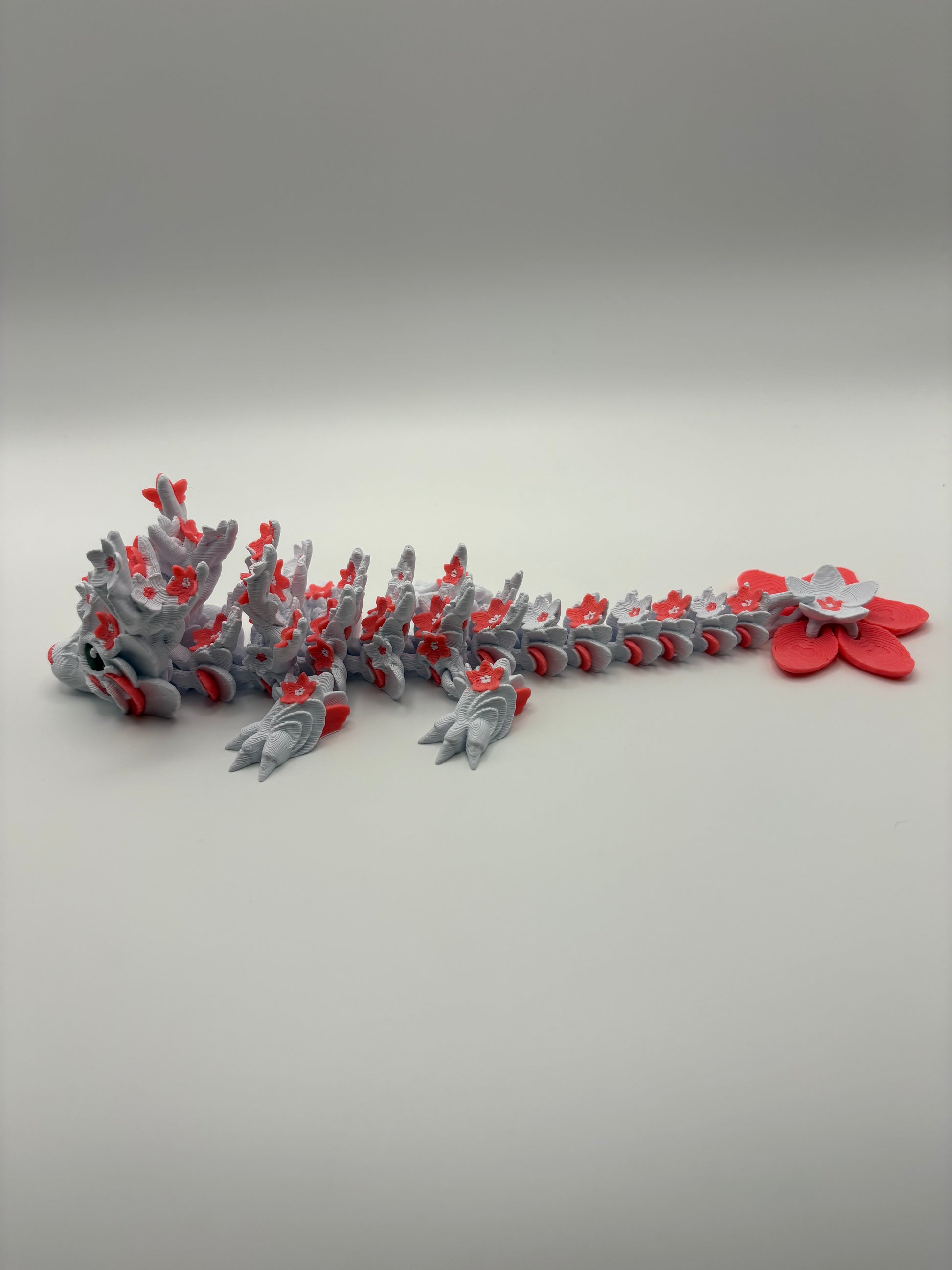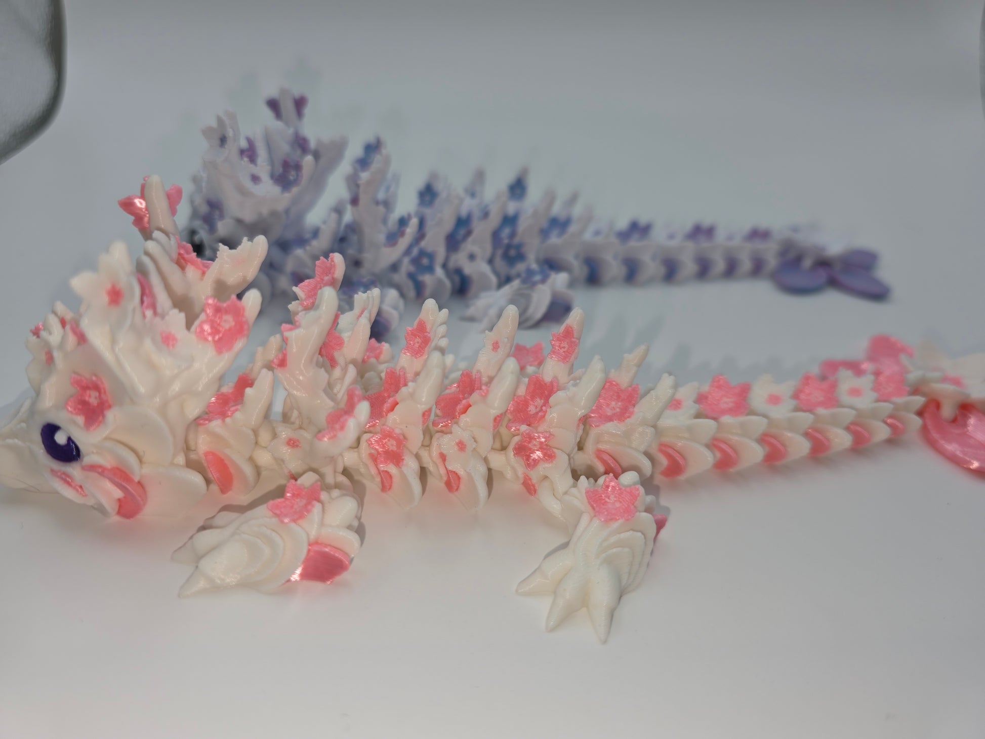 Delicately crafted, the Baby Cherry Blossom Dragon blends soft white and pink hues inspired by cherry blossoms, creating an elegant and enchanting figure. Its graceful design captures the essence of spring’s beauty, making it a refined addition to any collection or décor. This piece embodies both charm and sophistication, perfect for those who appreciate subtle artistry and serene aesthetics.