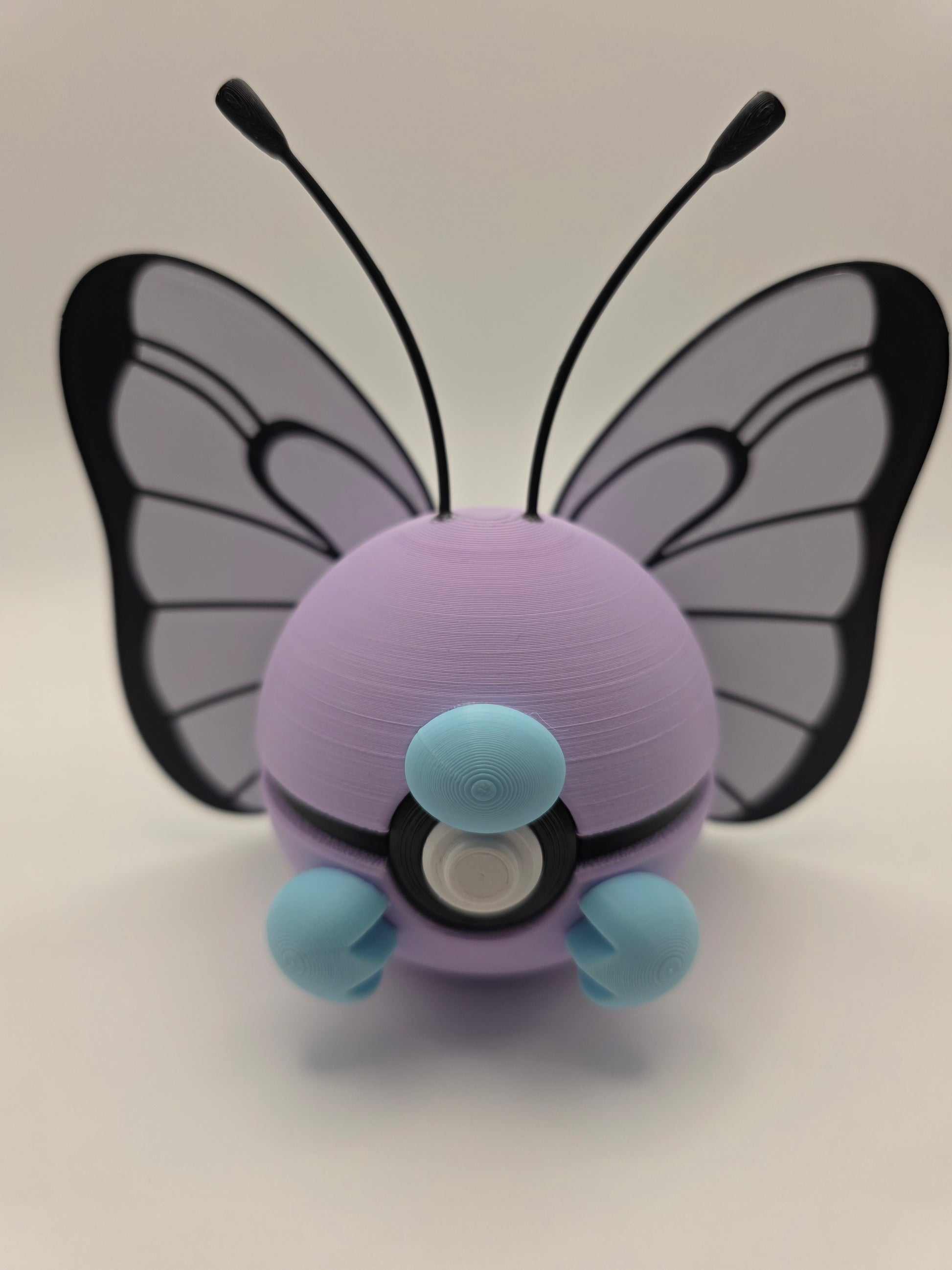 "Level up your fidget game with our Butterfree themed pokeball! This pokey ball not only captures your love for Butterfree, but also has a built-in fidget clicker for endless entertainment. Catch one now! (Fidget spinner, who?)