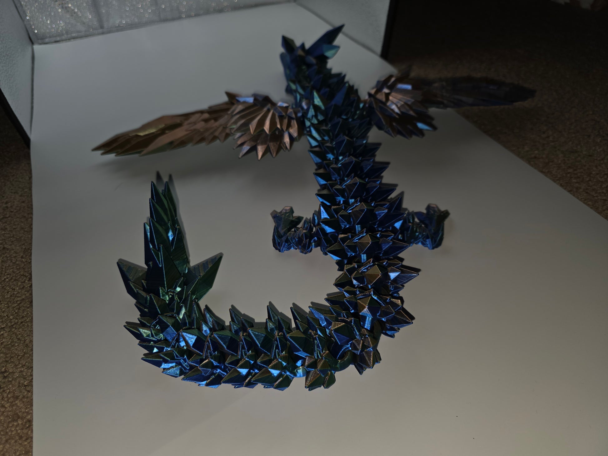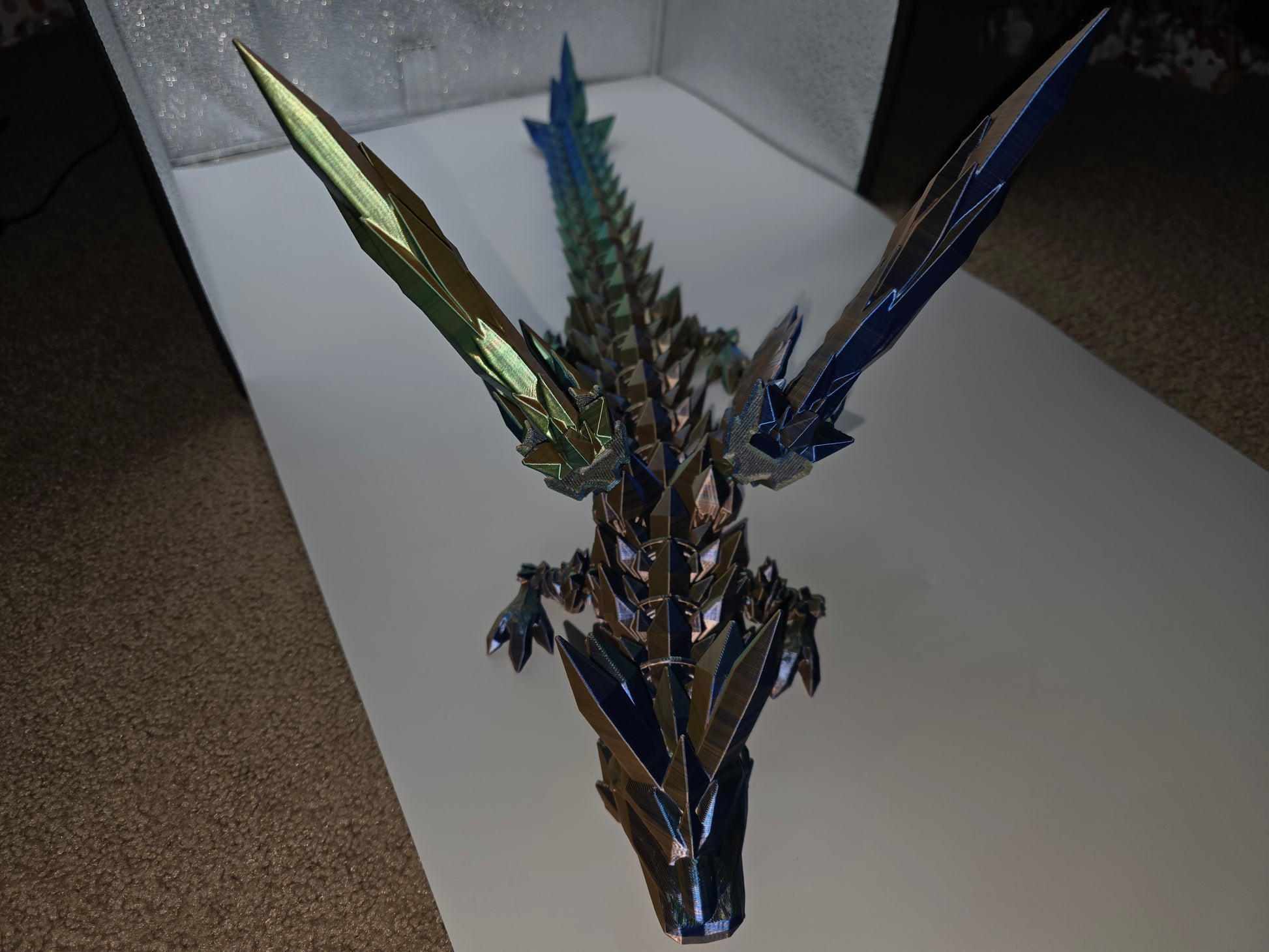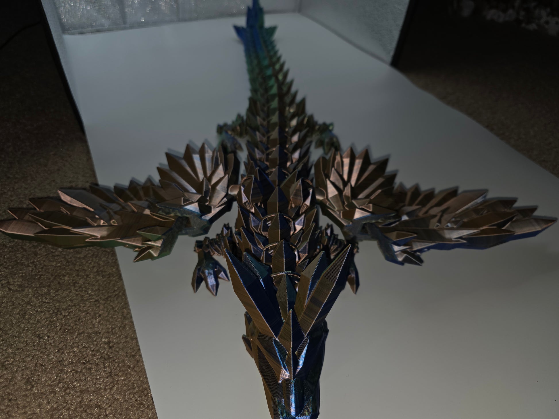 "Bring magic to life with our 3D printed Crystalwing dragon! Its intricate details and stunning wings will capture the imagination and inspire wonder in all who see it. A perfect addition to any fantasy collection. Limited quantities available, don't miss out!"
