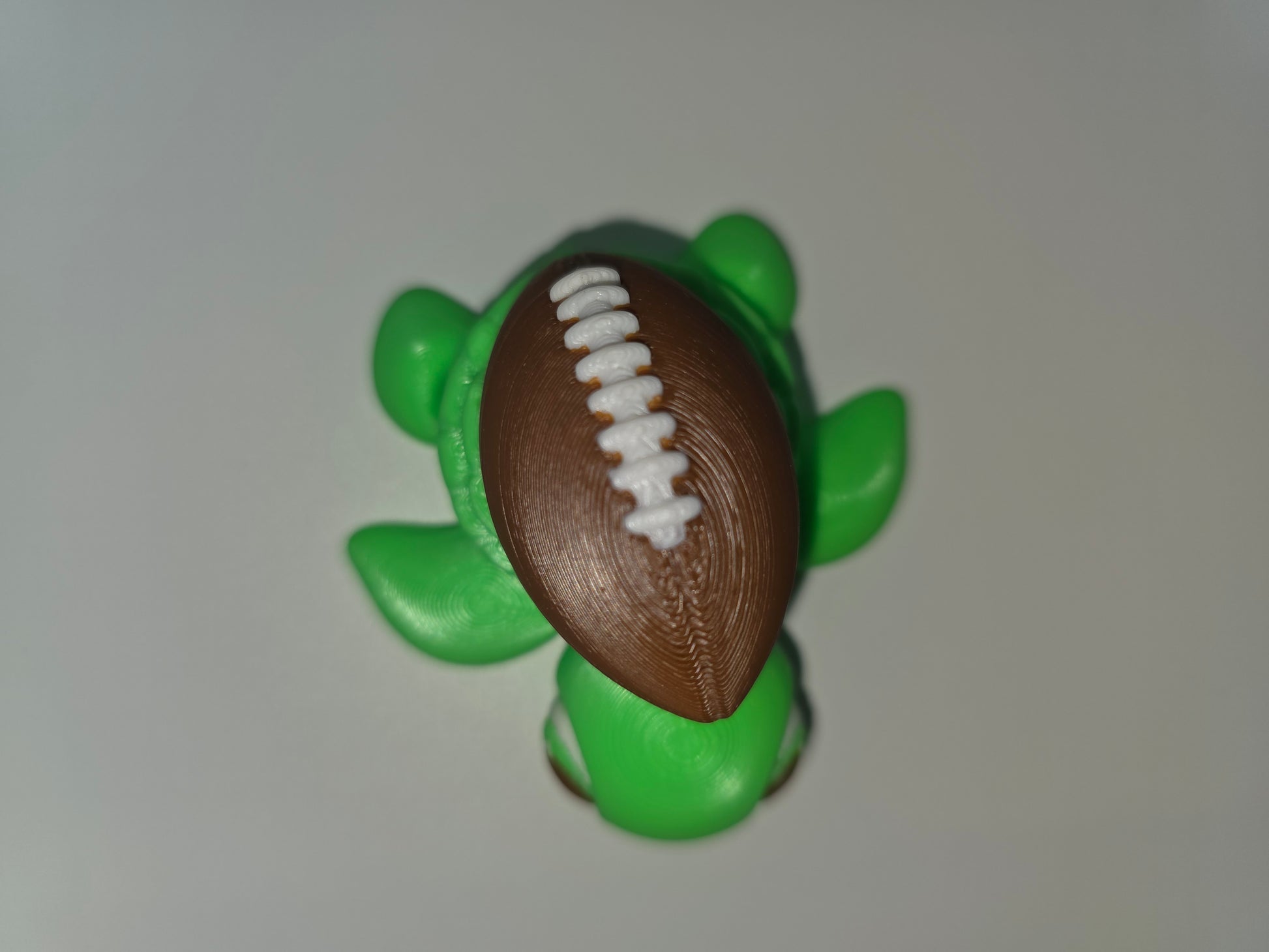 "Score a touchdown with these 3D printed football turtles! These quirky creatures are sure to bring some fun to any game. Perfect for fans of both football and turtles. Get ready to shell-ebrate!"