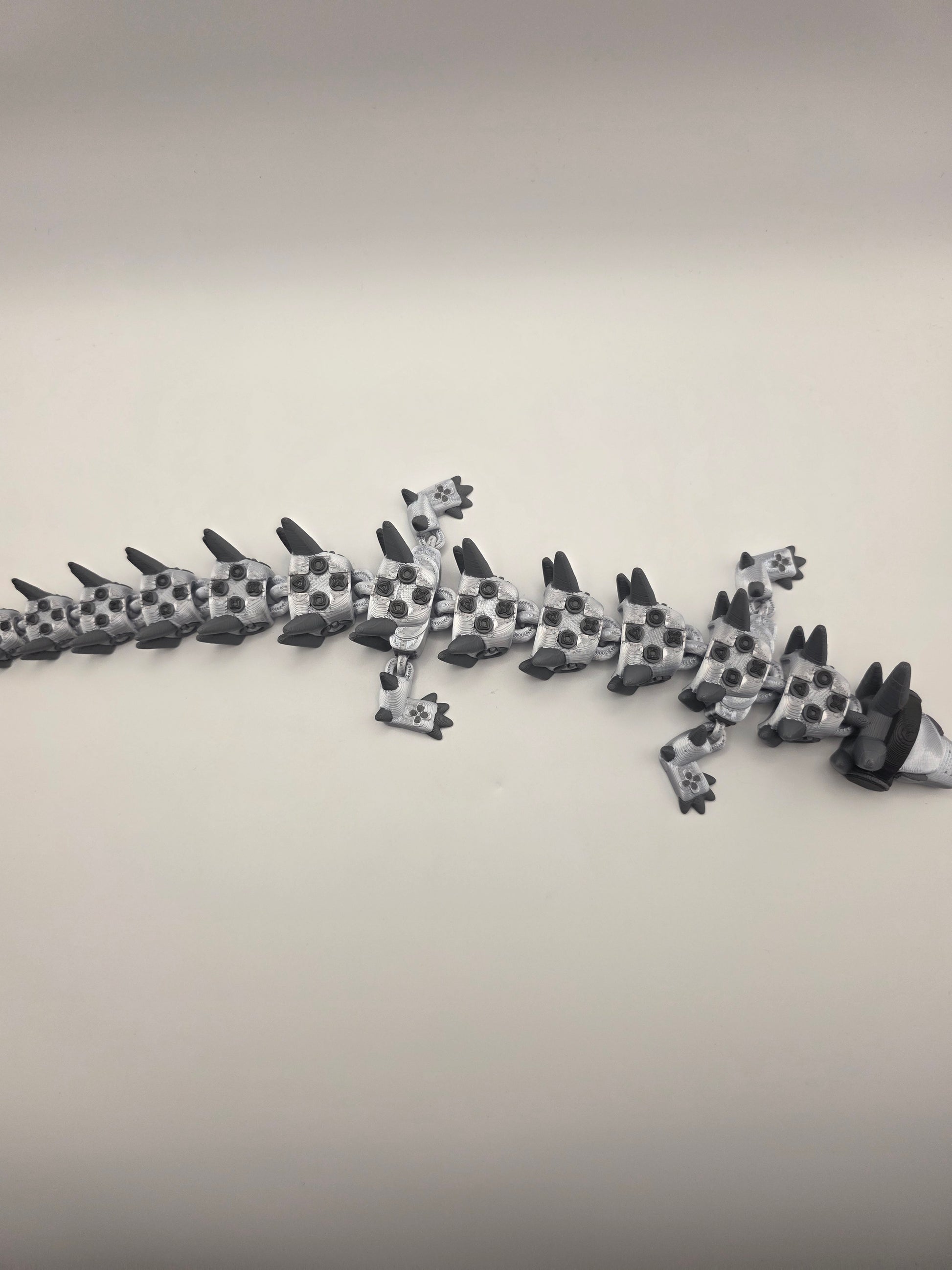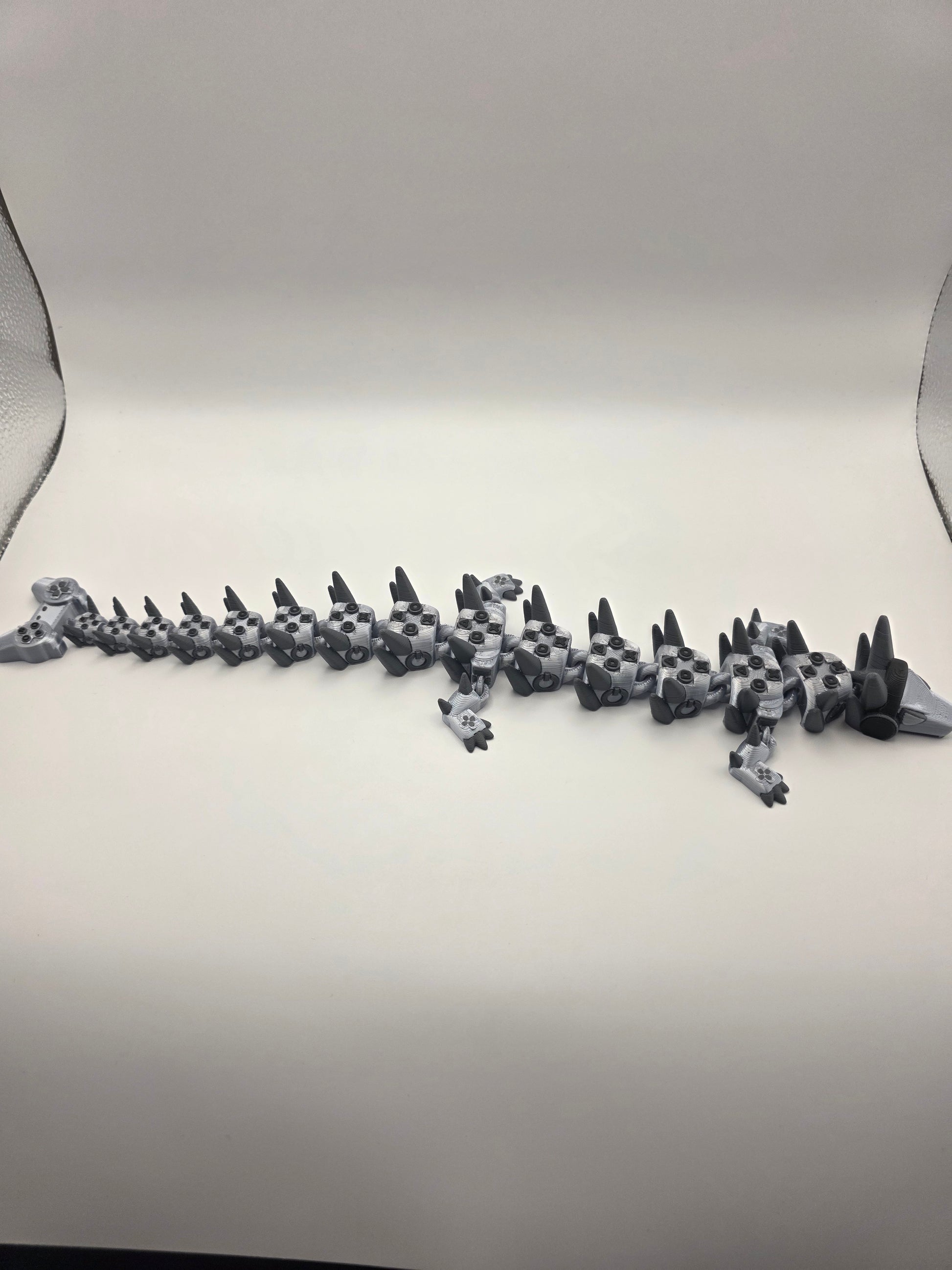 Unleash your inner gamer with our Gamer Dragon! These 3D printed, articulating PlayStation themed dragons are the perfect addition to any gaming setup. Up your game and add a touch of whimsy with these quirky dragons. (Get ready to level up!)