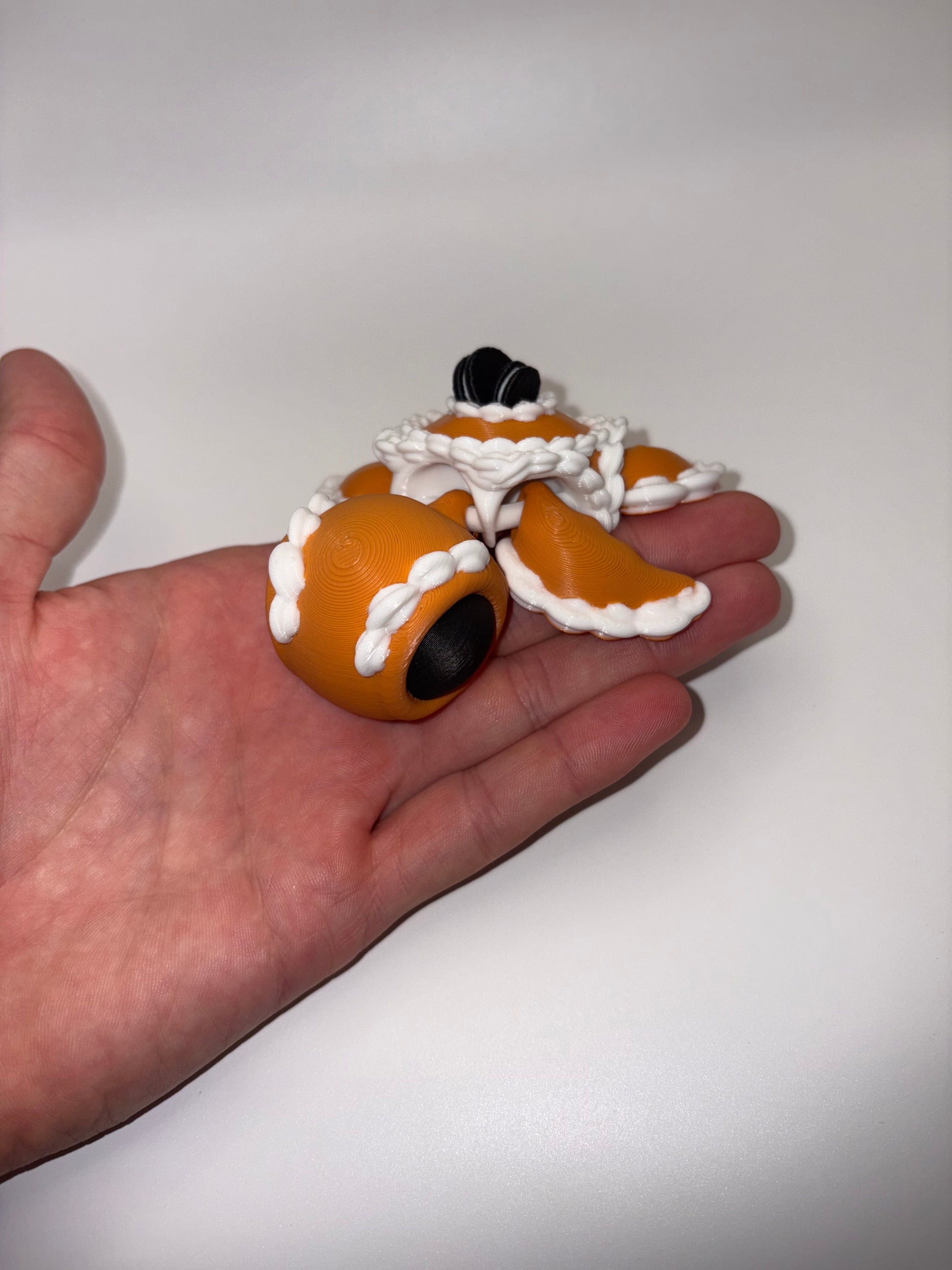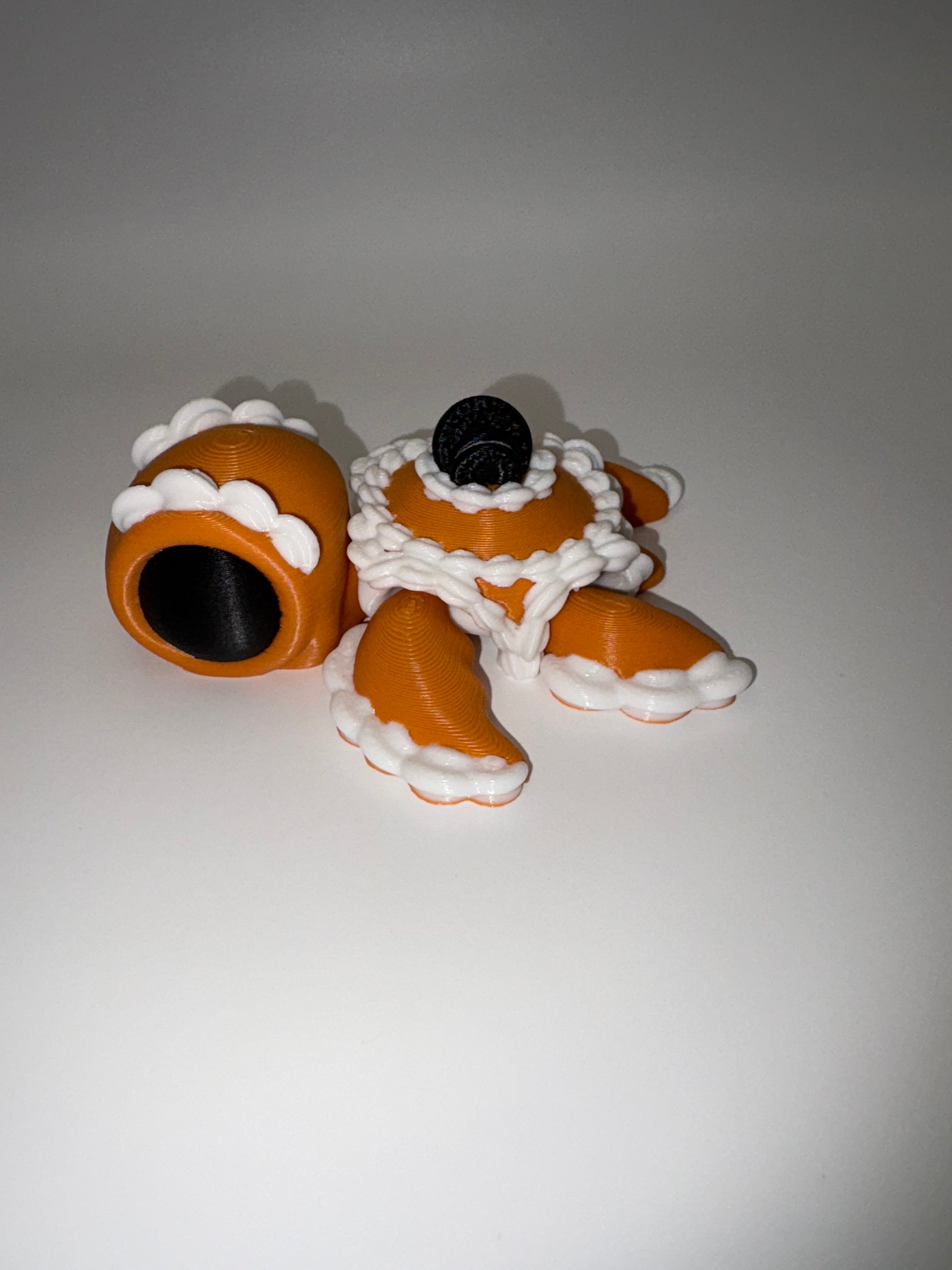 Indulge in a slice of sweetness with our Oreo Cake Turtle. This quirky, 3d printed turtle features brown, black, and white coloring, inspired by everyone's favorite dessert. It's a treat for the eyes and a whimsical addition to any collection.