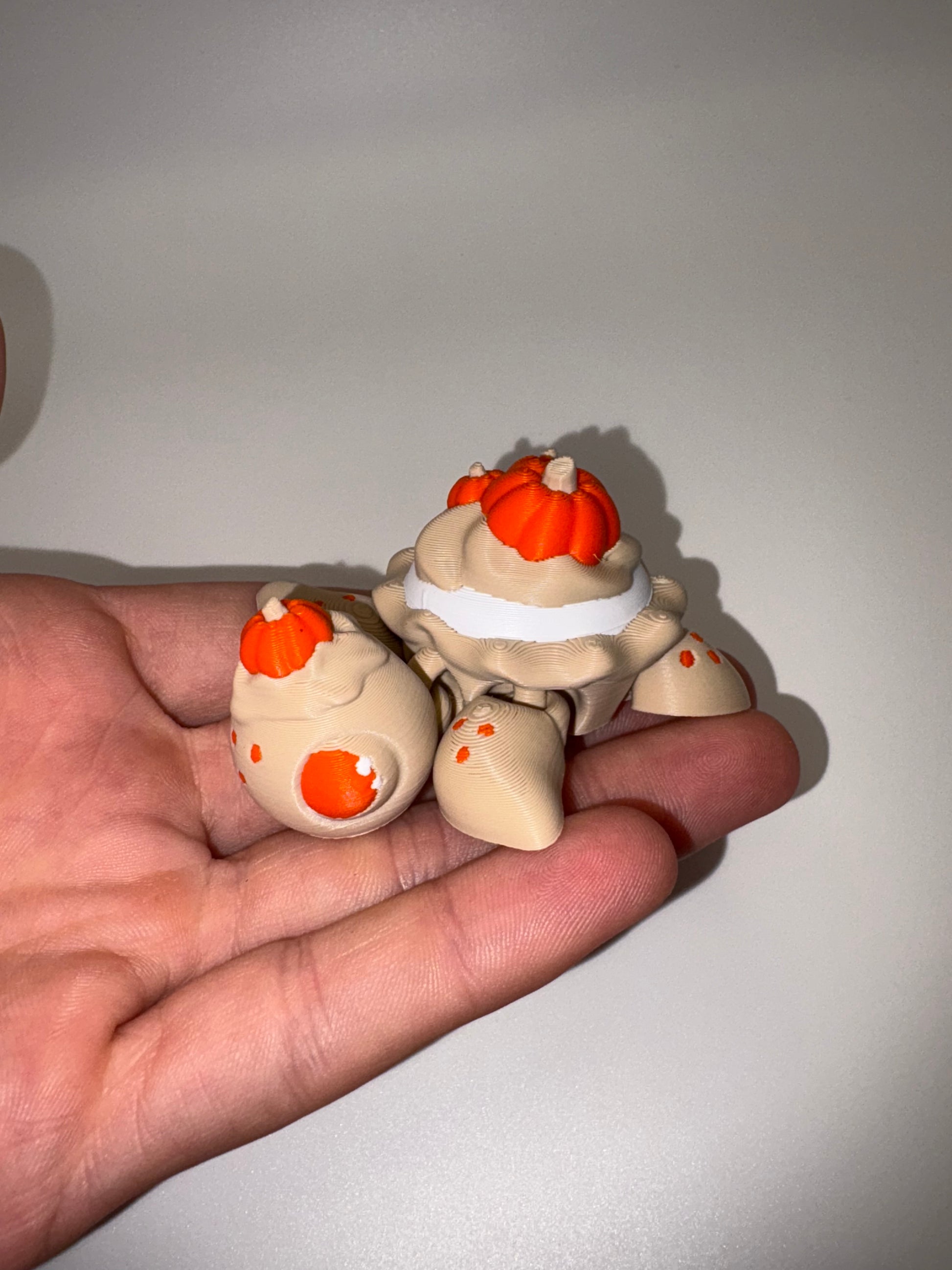 Meet the Pumpkin Pie Turtle. This adorable turtle features a beige, orange, and white color combo, perfect for the fall season. It's a playful twist on a classic dessert, sure to bring a smile to your face (and taste buds).