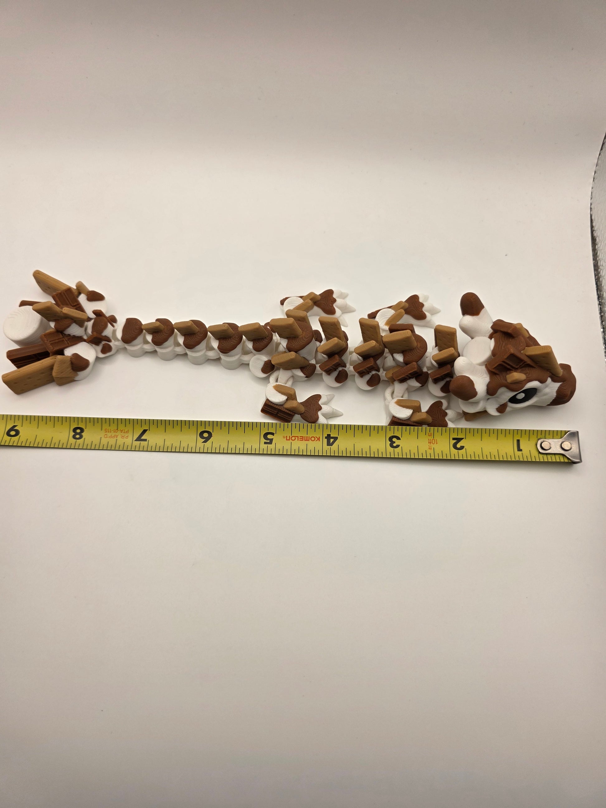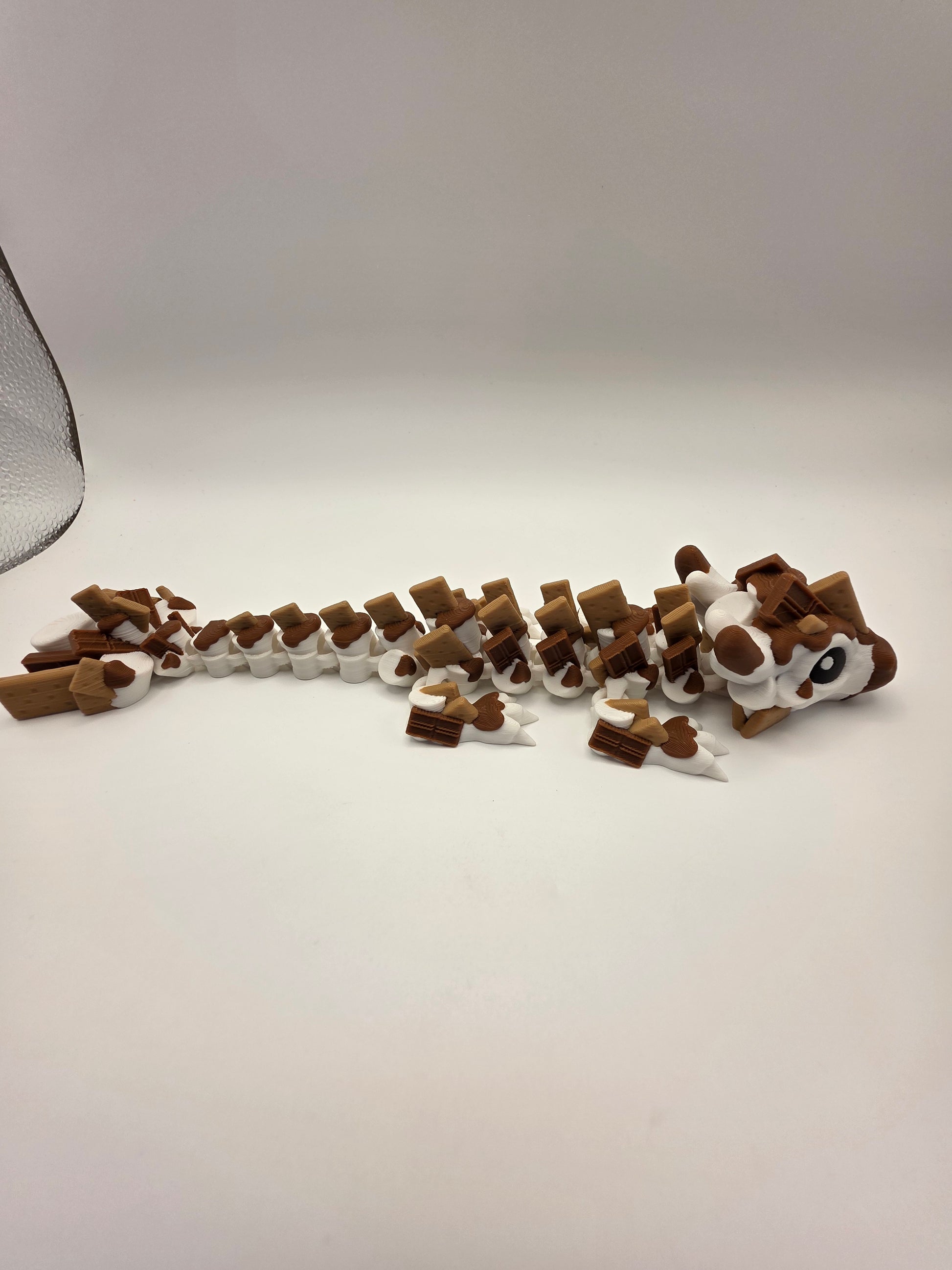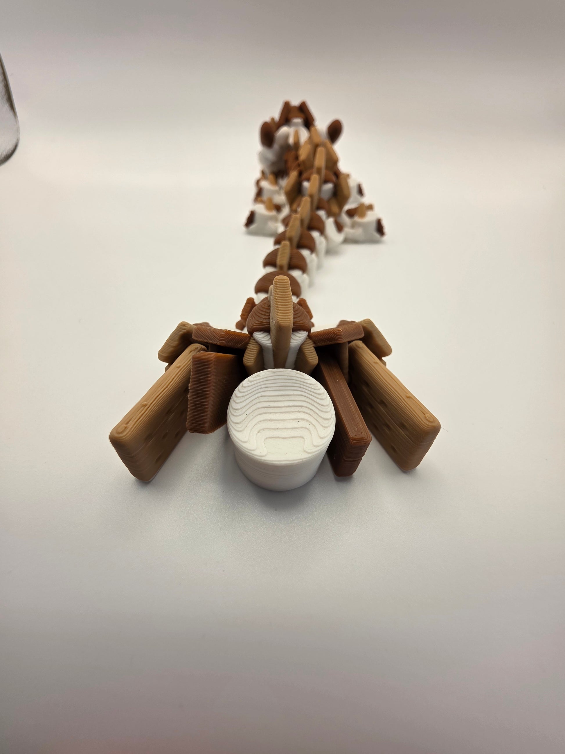 Unleash the cuteness with our Smores Dragon! This 3D printed dragon is fully articulated and resembles a delicious s'more. Perfect for adding a unique touch to your collection and making your friends jelly (bean)!