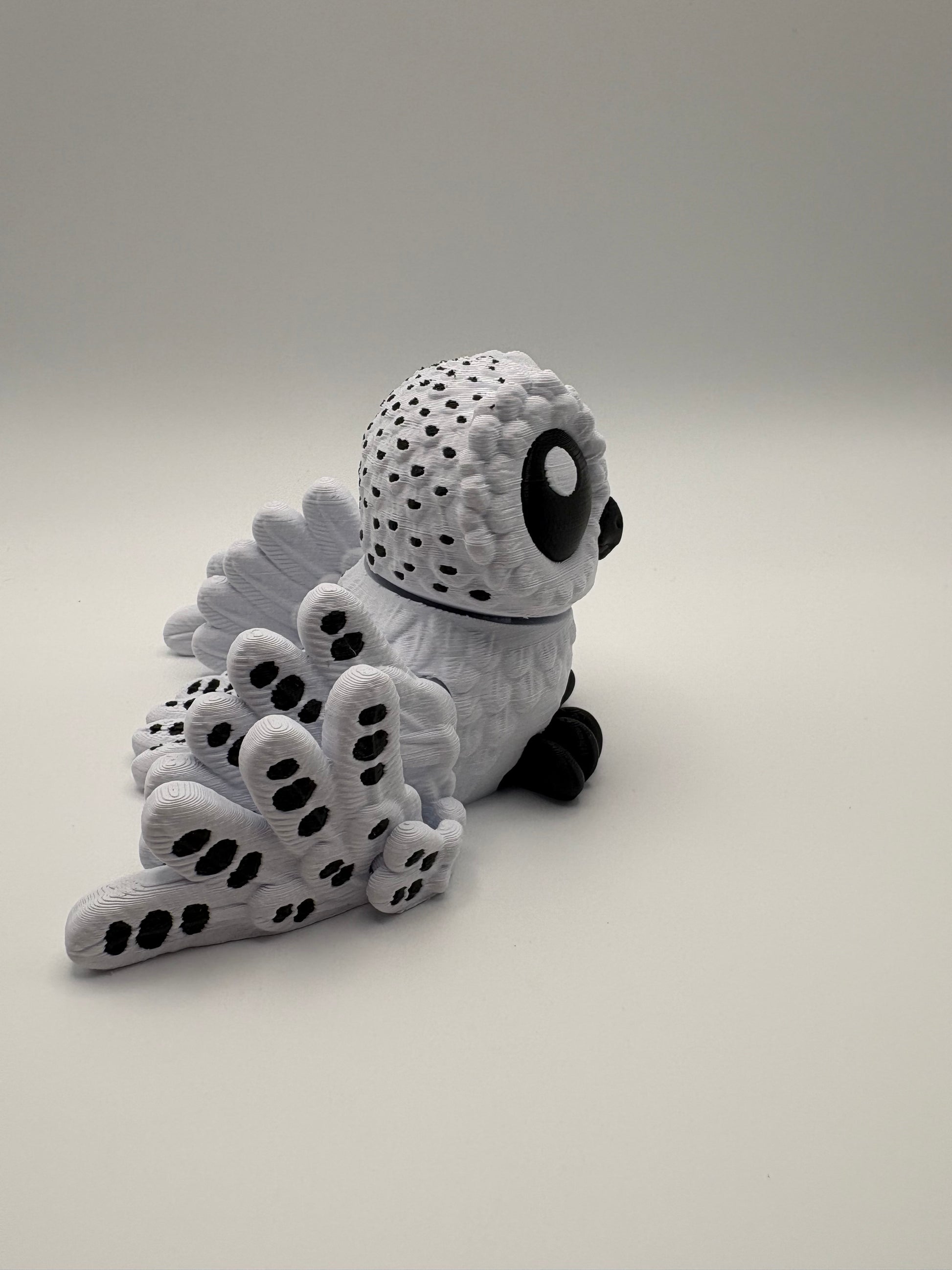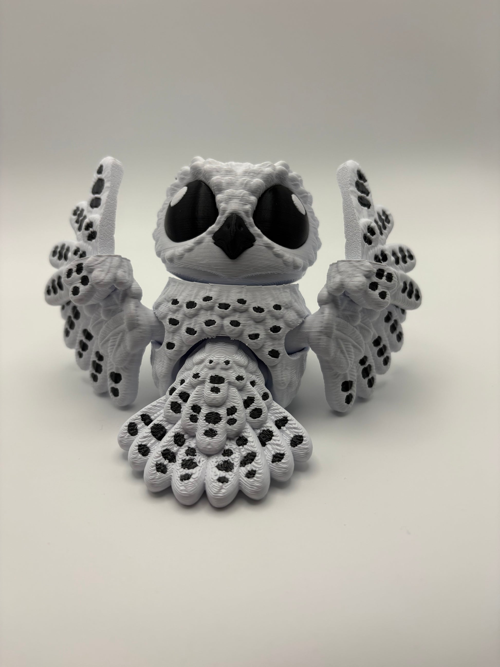 "Fly away with this stunning and unique Snow owl figurine! Crafted with precision through 3d printing. A must-have for any bird lover or home decor enthusiast. Feather your nest with this whimsical find. (Owl you need is love! 🦉)"